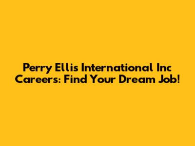 Perry Ellis Careers: Find Your Dream Job!